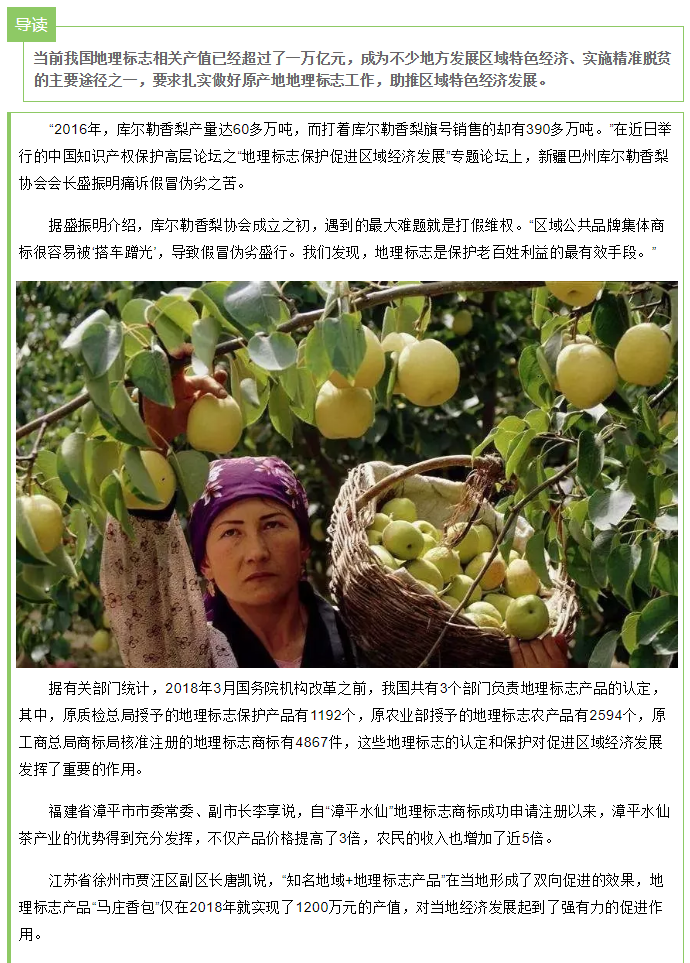 我国地理标志相关产值已超万亿元 成为富农强农重要抓手