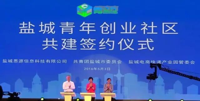活动现场,共青团盐城市委员会、盐城电商快递产业园管委会及北京恩源科技有限公司三方签署了盐城青年创业社区共建协议,旨在为盐城“互联网+”创新创业提供专业有效的支撑。