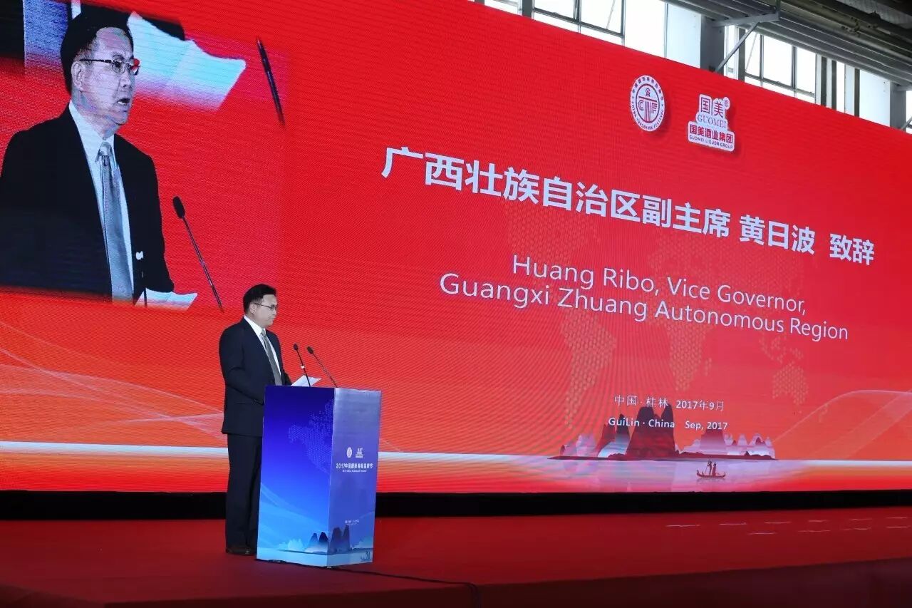 黄日波在开幕式致辞中表示,作为我国商标界规格最高、规模最大、影响最广的商标品牌盛会,在享誉中外的旅游文化名城桂林市举办,充分体现了国家工商总局、中华商标协会对广西经济社会发展的关心和支持,也体现了国内外企业界精英、知识产权界专家学者对广西这片热土的关注和厚爱。商标品牌是国家发展的战略性资源和国际竞争力的核心要素。发挥商标品牌的引领作用,塑造更多依靠创新驱动、依靠品牌增值的经济增长点,对于广西破解经济发展深层次矛盾,加快转变经济发展方式,提升经济综合实力和竞争力具有重要意义。近年来,广西认真贯彻实施《国家知识产权战略纲要》和《中国制造2025》,坚持把实施商标品牌发展战略作为推进供给侧结构性改革,促进经济转型升级和推动大众创业、万众创新的重要举措,制定了《广西实施商标品牌发展若干意见》,积极落实国家工商总局和自治区人民政府签订的《推进广西建设商标品牌强区合作框架协议》,深入实施“商标品牌强桂”战略,聚力广西商标品牌建设,积极打造商标品牌少数民族示范区,商标品牌发展战略取得了新的成就。2017年中国国际商标品牌节和中华品牌博览会的举办,为推动广西商标品牌发展提供了一次向兄弟省市区学习商标品牌发展先进经验的绝好机会,也为广西企业深化与中外企业的交流合作搭建了广阔的平台。我们将以这次盛会为契机,认真梳理和吸收各位领导、专家和工商界的朋友们的意见和建议,进一步加大商标品牌战略实施力度,在全区掀起推进商标品牌建设的新一轮高潮,进一步激发推动经济转型升级的新动能。借此机会,我们也真诚希望各位领导、各位嘉宾和朋友们,一如继往地关心、支持广西的发展,促进广西经济社会发展取得新成绩、实现新跨越。