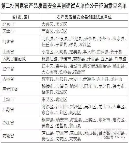 为了让大家更好的掌握这项政策,我们汇总了第一批和第二批试点单位名单(附件一、附件二);创建示范县的九项条件(附件三);国家农产品质量安全县考核办法(附件四),请大家见附件。