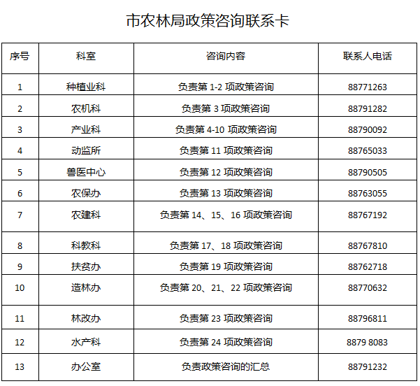 Å©ÃñÅóÓÑÃÇ£¬Ïà¹ØÕþ²ßµÄ¹á³¹ÂäʵÇé¿ö£¬»¶Ó´ó¼ÒËæÊ±½øÐмල£»¸÷ÏîÕþ²ßµÄÖ´ÐÐÇé¿öºÃÓë·ñ£¬Ï£ÍûÄãÃǸøÓè¿Í¹ÛµÄÆÀ¼Û£»¶ÔÕþ²ßÖ´ÐÐÖдæÔÚµÄÎ¥¼ÍÎ¥¹æÎÊÌ⣬»¶Ó´ó¼ÒËæÊ±½øÐоٱ¨¡£Äú¶ÔÏÖÐеÄÕþ²ßÓÐʲôÒâ¼û£¿Ï£ÍûÍêÉÆºÍÔö¼ÓÄÄЩÕþ²ß£¿Äú¶ÔÎÒÊÐÅ©ÁÖ²¿ÃÅ»¹ÓÐʲôҪÇ󣿻¹Ï£ÍûÅ©ÁÖ²¿ÃÅÍêÉÆÄÄЩ·þÎñ£¿µÈµÈ£¬¾ù¿Éͨ¹ýÒÔÏÂÁªÏµ¿¨ÖÐÁªÏµµç»°×ª¸æÎÒÃÇ£¬ÎÒÃǽ«ÕäÊÓÄúµÄÿһÌõÒâ¼û¡¢Ã¿Ò»¸ö½¨Ò顢ÿһ´Î·´À¡£¬²¢½«°ÑËüת»¯Îª¹¤×÷µÄ¶¯Á¦ºÍ·½Ïò£¬Ò»Èç¼ÈÍù×öºÃ·þÎñ¹¤×÷£¬Å¬Á¦ÎªÍƶ¯ÚöáÁũҵũ´å¾¼Ã·¢Õ¹×÷³öÐµĹ±Ï×£¡£¨¼à¶½¾Ù±¨Í¶Ëߵ绰£º88791232£©¡£